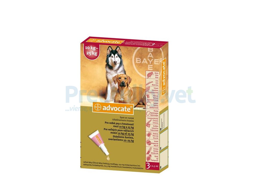 10-25 kg: Advocate pre veľkých psov - objem pipety 2,5 ml.